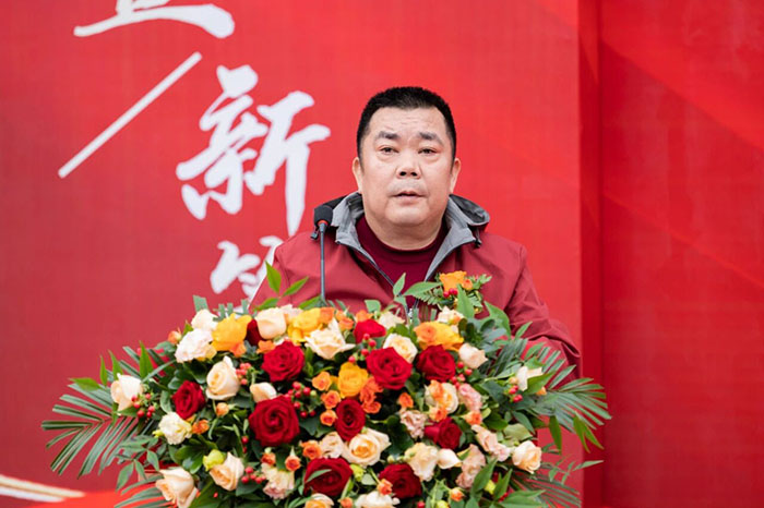 zui后,在熱情洋溢的現(xiàn)場(chǎng)氛圍中,河南榮盛科技集團(tuán)董事長(zhǎng)楚科奇發(fā)布了致辭。他首先代表集團(tuán)向蒞臨現(xiàn)場(chǎng)的各位領(lǐng)導(dǎo)、嘉賓及全體員工表示熱烈歡迎與誠(chéng)摯感謝。楚總回顧了集團(tuán)十二年的發(fā)展歷程,指出新材料生產(chǎn)基地的建成,凝聚了全體榮盛人的智慧、汗水與堅(jiān)守,是企業(yè)十二年奮斗征程上的重要里程碑,更是企業(yè)面向未來(lái)、決勝未來(lái)的戰(zhàn)略新起點(diǎn)。楚總強(qiáng)調(diào),新工廠的順利落成,得益于各級(jí)主管部門(mén)的大力支持與高效服務(wù),也離不開(kāi)集團(tuán)管理層的高效協(xié)同與一線團(tuán)隊(duì)的奮力拼搏。他特別感謝了王海軍總經(jīng)理及集團(tuán)管理層,稱贊其在項(xiàng)目戰(zhàn)略定位與資源配置中發(fā)揮的關(guān)鍵作用;同時(shí),他也向宋廣林總經(jīng)理及全體建設(shè)者致敬,感謝他們不畏艱辛、全力以赴,將一片荒蕪之地打造為現(xiàn)代化智能工廠。