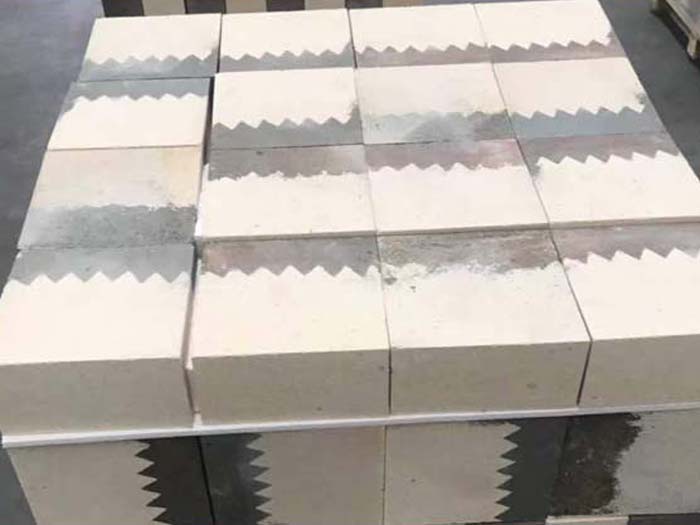 以高品質礬土熟料和電熔白剛玉粉為原料,加入適量膨脹劑,經成型和800℃熱處理,可制成熱震穩定性好的高鋁磚。高品質礬土熟料的化學成分為(%):Al2O383.50、SiO29.39、Fe2O31.29、K2O+Na2O0.86。Al2O3含量為95.36%。泥粒配比:高品質礬土熟料15~35%,高品質礬土細粉20~40%,電熔白剛玉粉5~10%,紅柱石和硅線石復合膨脹劑6~15%,化學結合劑6~10%。